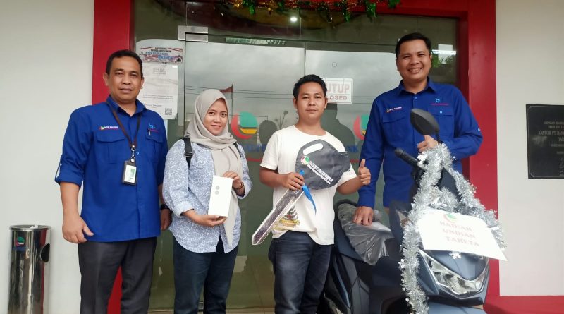 “Kami atas nama lembaga dan pimpinan direksi mengucapkan selamat. Semoga menjadi nasabah yang loyal dan selalu meningkatkan saldonya. Semoga hadiah ini bermanfaat,” ucap Mardedi.