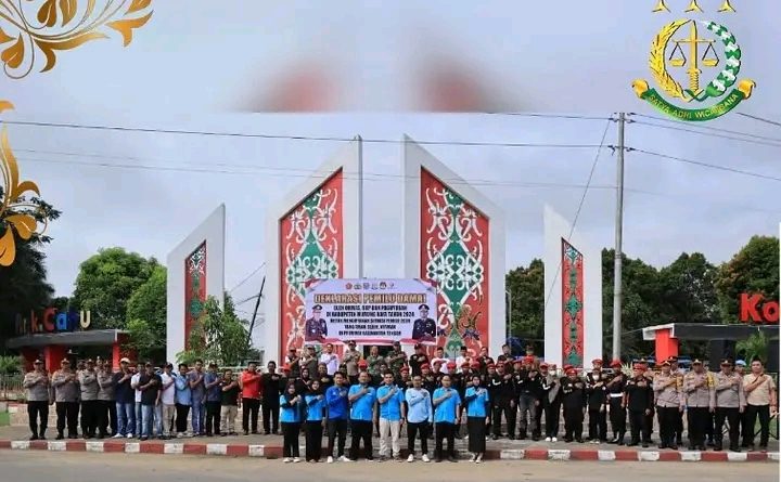 Puruk Cahu (SPIRITNUSANTARA.COM) – Kepala Kejaksaan Negeri Murung Raya (Mura), diwakilkan oleh Furqon Kurniawan, S.H., selaku Jaksa Fungsional, menghadiri kegiatan Deklarasi Pemilu Damai 2024. Acara ini berlangsung di Bundaran Emas Puruk Cahu, Kabupaten Murung Raya, dan menjadi panggung bagi seluruh elemen masyarakat untuk menyatukan tekad menjaga keamanan dan kelancaran pelaksanaan pemilu pada Kamis, (8/2/2024).