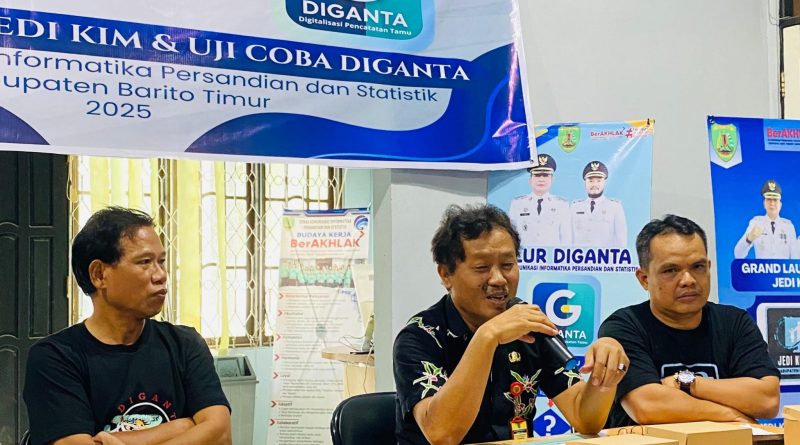 Tamiang Layang, forumhukum.online – Dinas Komunikasi Informatika Persandian dan Statistik (Diskominfo Santik) Kabupaten Barito Timur resmi meluncurkan Jejaring Digital Komunitas Informasi Masyarakat (JEDI-KIM) sekaligus melakukan uji coba terbatas aplikasi DIGANTA (Digitalisasi Pencatatan Tamu) pada Jumat (3/10/2025) di Aula Diskominfo Bartim.