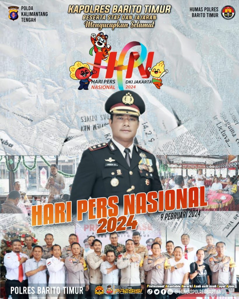 Tamiang layang (SPIRITNUSANTARA.COM) – Memperingati Hari Pers Nasional 2024, Kapolres Barito Timur, AKBP Viddy Dasmasela, dengan tegas menyampaikan pesan kepada seluruh wartawan di wilayah setempat untuk menjaga keutuhan bangsa dan mengawal Pemilu 2024.