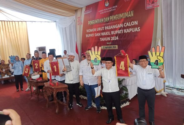 Kegiatan tersebut dipimpin langsung oleh Ketua KPU Kapuas Deden Firmansyah, dimana Kelima paslon yang berlaga di Pilkada Kapuas tampak antusias dan penuh semangat saat mengikuti proses pencabutan nomor urut. Setiap pasangan calon pun secara bergiliran maju mengambil nomor yang akan menjadi identitas mereka selama masa kampanye dan pemungutan suara.